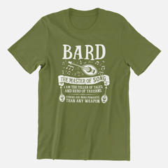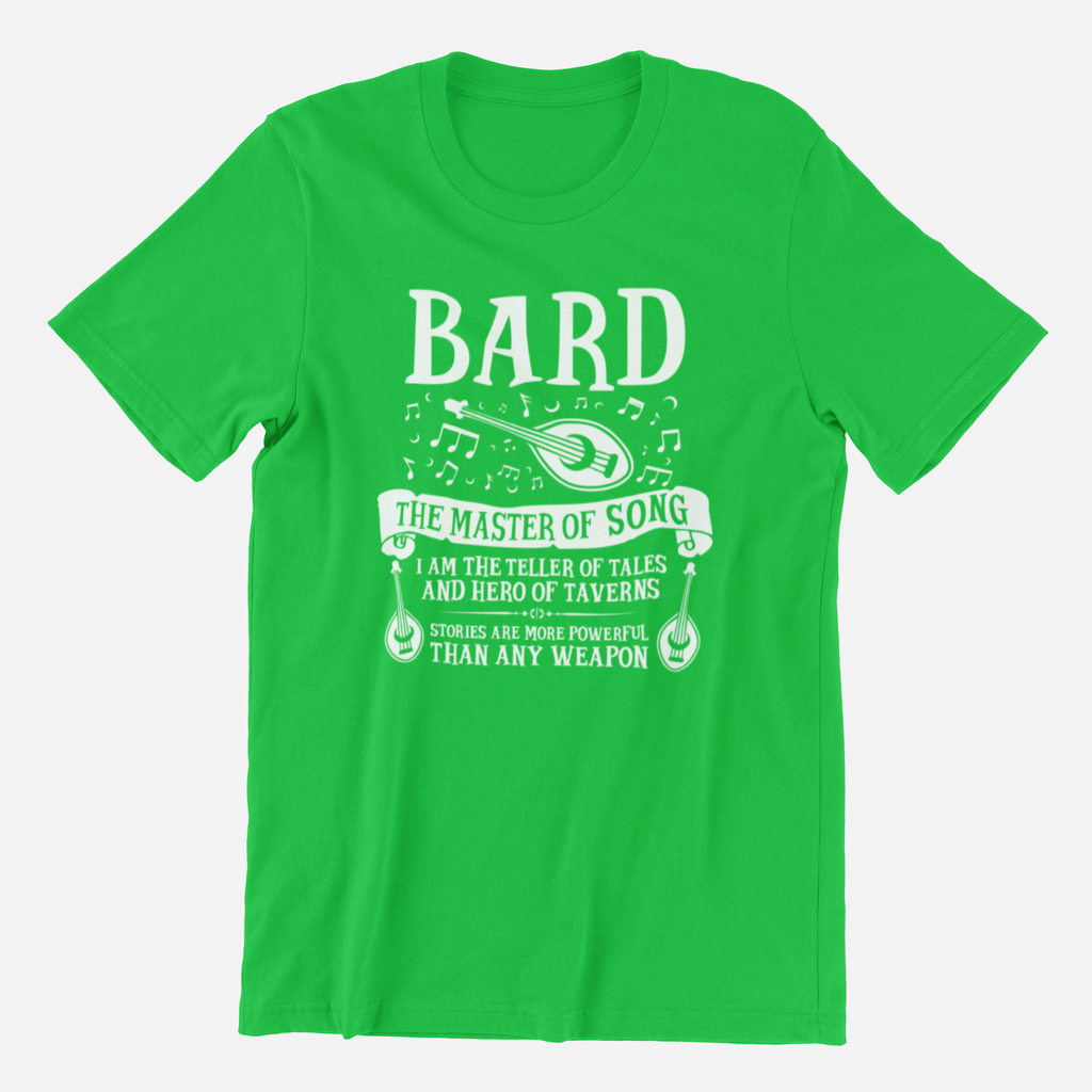 Experience the epic world of Dungeons and Dragons with this stylish Bard t-shirt. Whether you're fighting dragons, exploring dungeons, or creating your own adventure, this shirt is perfect for any fan. Made with high-quality material, it's durable and comfortable for all your quests. Become the ultimate barbarian in this must-have shirt.